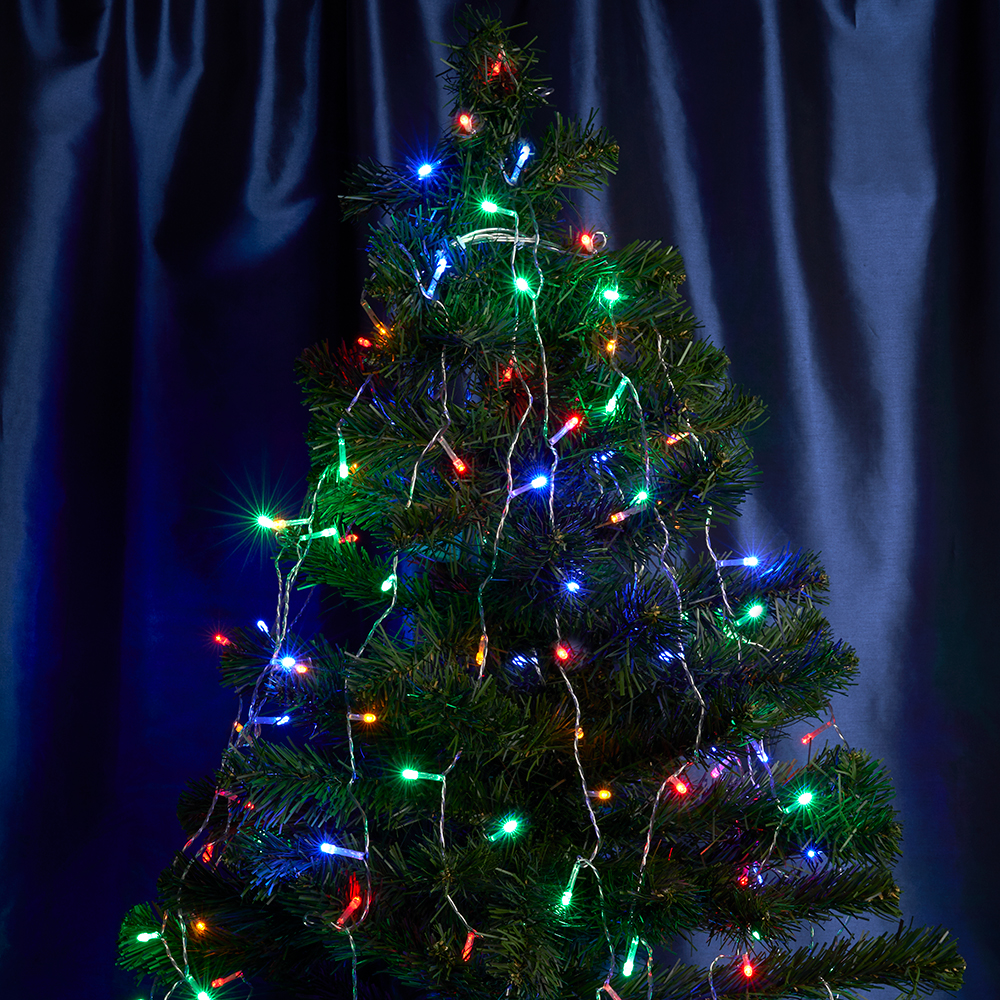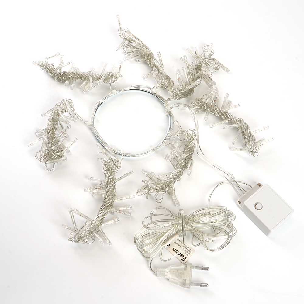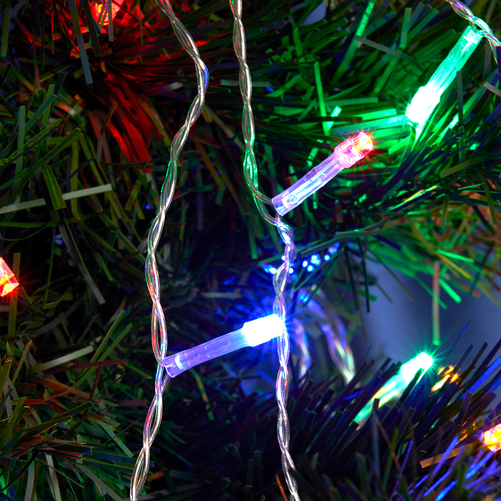 Гирлянда на елку FERON CL90, 140LED, (мультиколор), настраивается контроллером, 2м+1,5м прозрачный шнур, расстояние между светодиодами 10см, IP20, 8,4W, от сети 230V, последовательное подключение - НЕТ