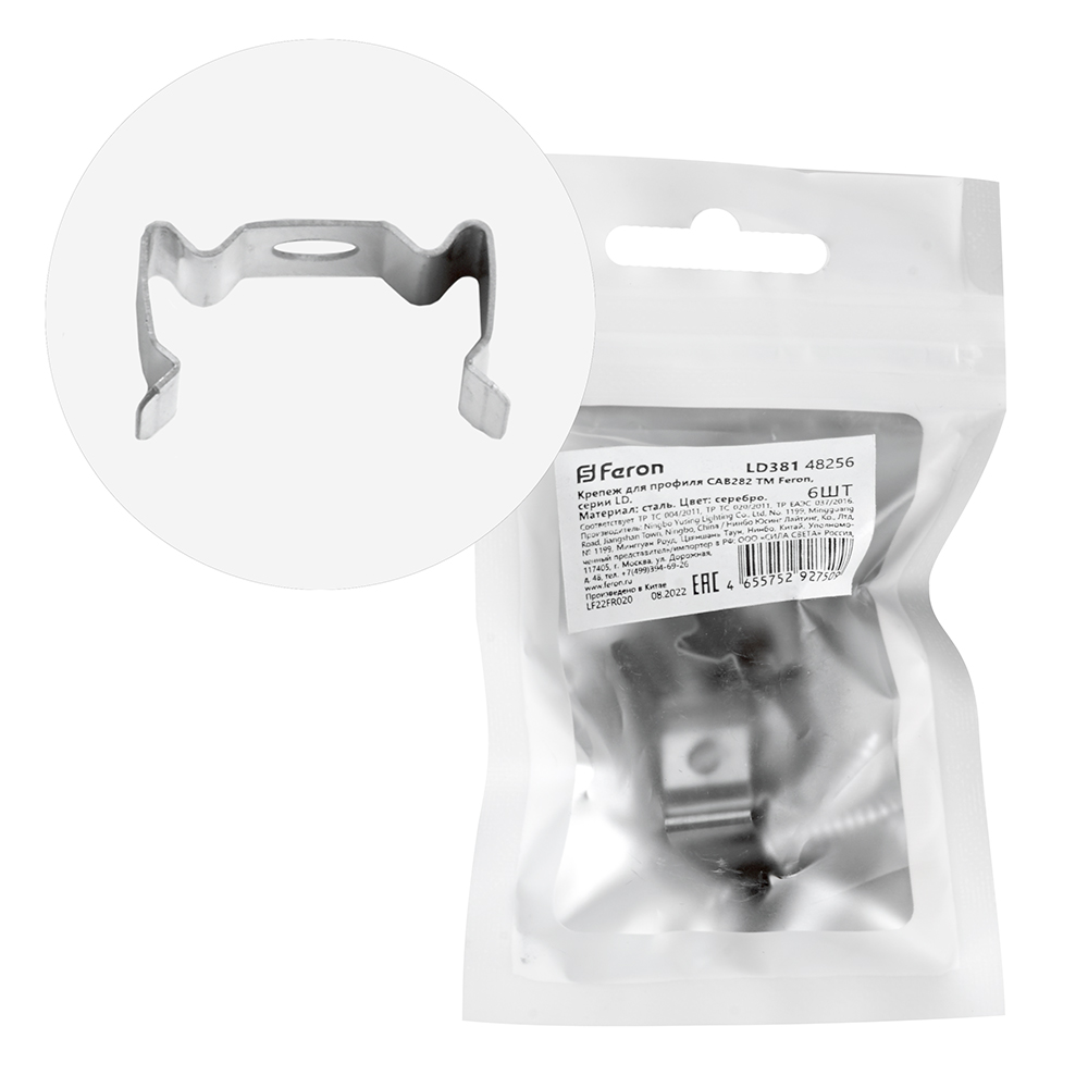 Крепеж для профиля FERON LD381 «круглый узкий», цвет серебро, 16*8*9мм