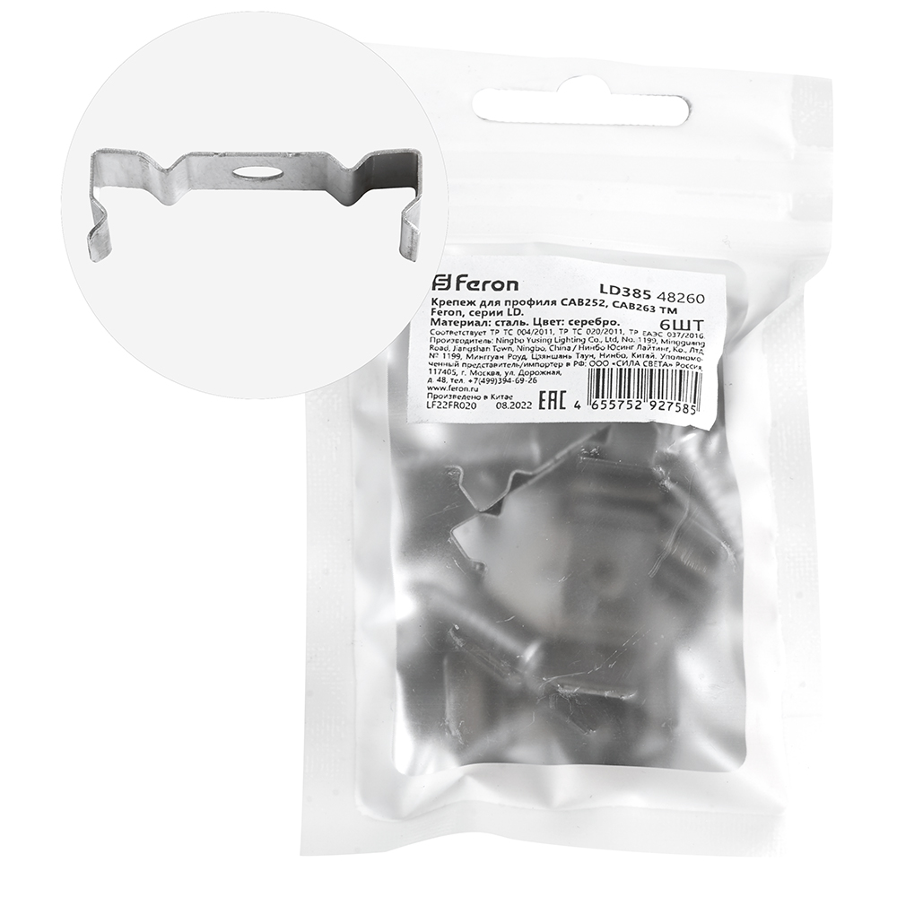 Крепеж для профиля FERON LD385 «встраиваемый широкий», цвет серебро, 25*6*9мм