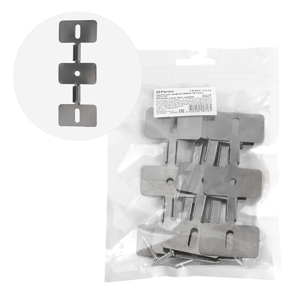 Крепеж для профиля FERON LD364 «накладной/подвесной», цвет серебро, 89*5*33мм