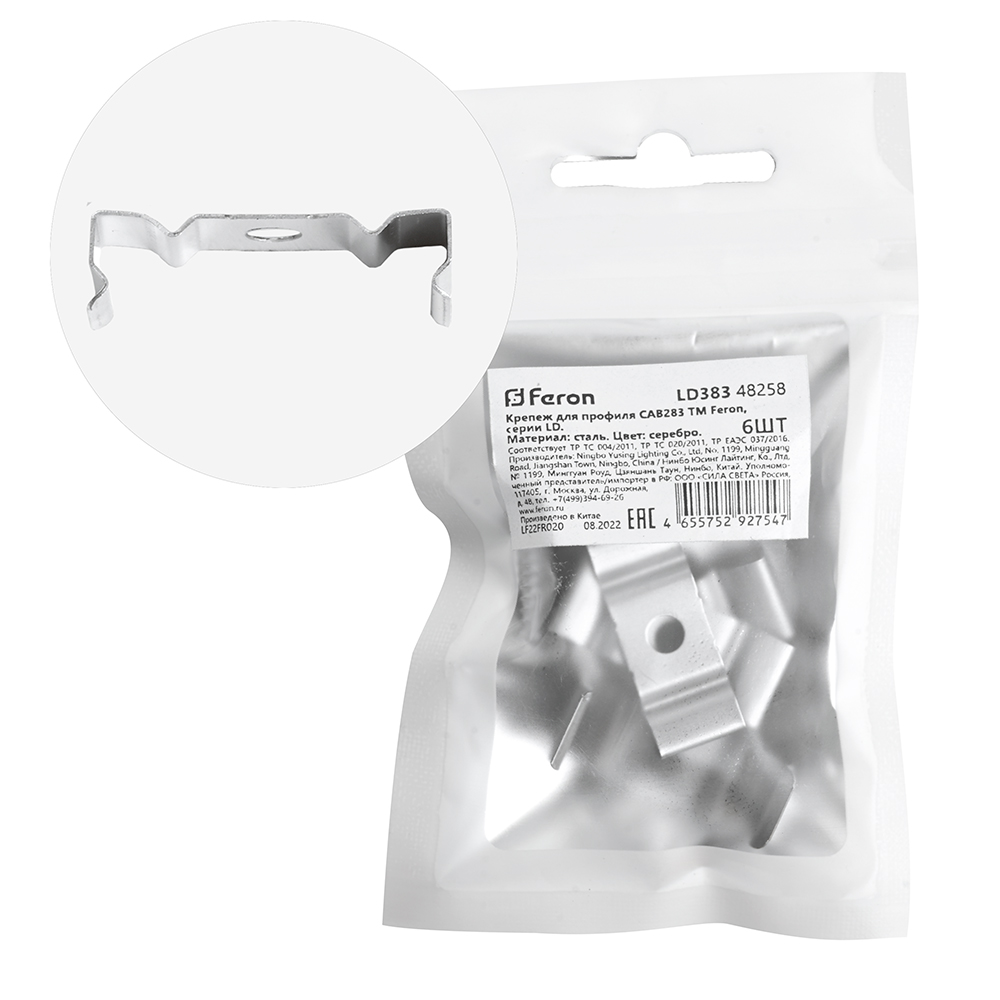 Крепеж для профиля FERON LD383 «накладной», цвет серебро, 25*11*9мм