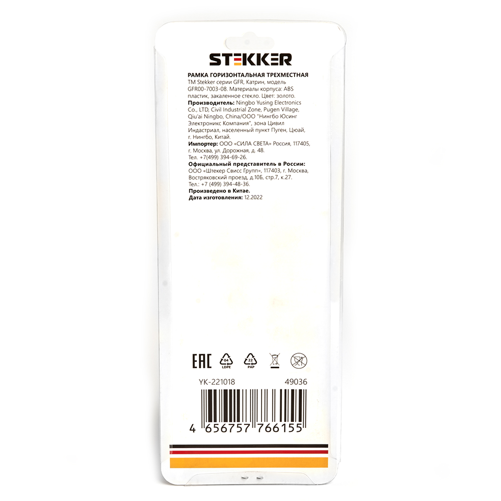 Рамка STEKKER GFR00-7003-08 на гнездо, , . Материал: Закаленное стекло/ABS пластик, цвет золото, размер 227*84*9мм. Номинальное напряжение , номинальный ток , диапазон рабочих температур ,