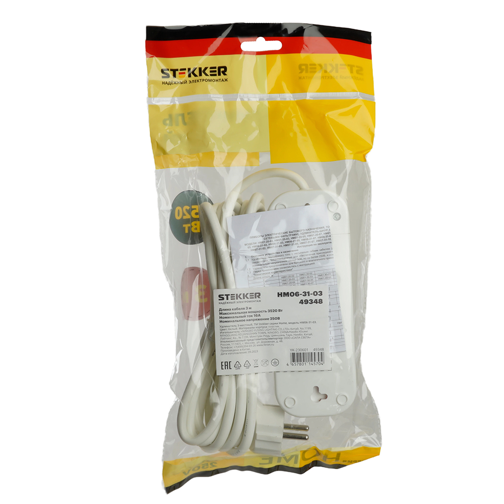 Удлинители STEKKER 49348, серия Home, цвет белый, длина 3 м, количество розеток 3, сталь, сечение кабеля 1 мм2, тип кабеля ПВС, материал кабеля -, ток 16А, напряжение 250В, максимальная нагрузка 3520Вт, тип вилки - прямая. Диапазон рабочих температур +1..+35°C, степень защиты IP20, класс защиты от поражения эл. током 1, размеры изделия -*-*-. Гарантия 1 год.
