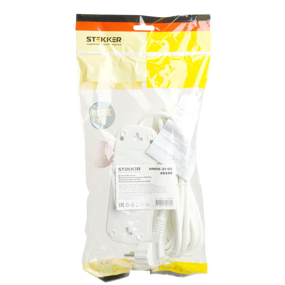 Удлинители STEKKER 49349, серия Home, цвет белый, длина 5 м, количество розеток 3, сталь, сечение кабеля 1 мм2, тип кабеля ПВС, материал кабеля -, ток 16А, напряжение 250В, максимальная нагрузка 3520Вт, тип вилки - прямая. Диапазон рабочих температур +1..+35°C, степень защиты IP20, класс защиты от поражения эл. током 1, размеры изделия -*-*-. Гарантия 1 год.